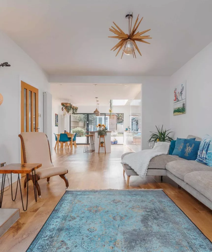 I hope people feel it’s warm, inviting, and homely – lots of rugs, cushions, and little touches that show it’s a family home, right down to the kids’ games, books, toys, and the slide in the garden!
